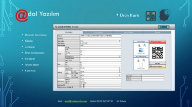 @ • Ürün Kartı dal Yazılım • Dinamik Tanımlama • Ölçüler • Ambalaj • Ürün Referansları • Fotoğraf • Teknik Resim • Kare kod Mail : adal@adalyazilim.com Mobil: 0533 549 87 07 Ali Dalyan