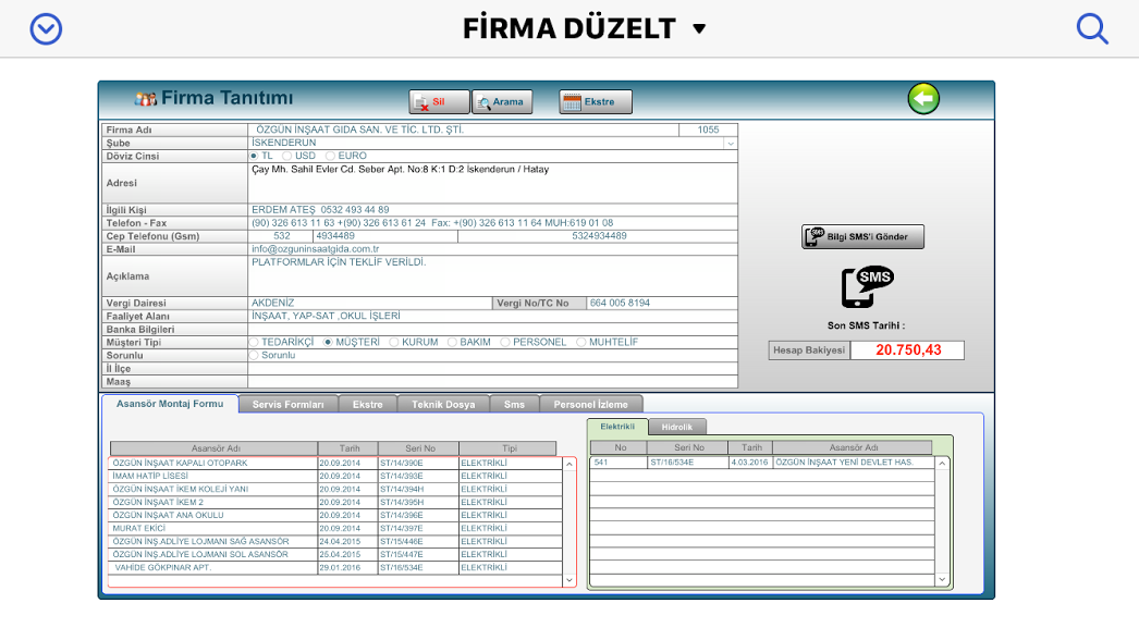 -Asansör Montajı, Revizyon,Bakım, Onarım ve Tahsilat talimatları, personelin cep telefonunda